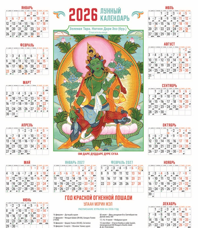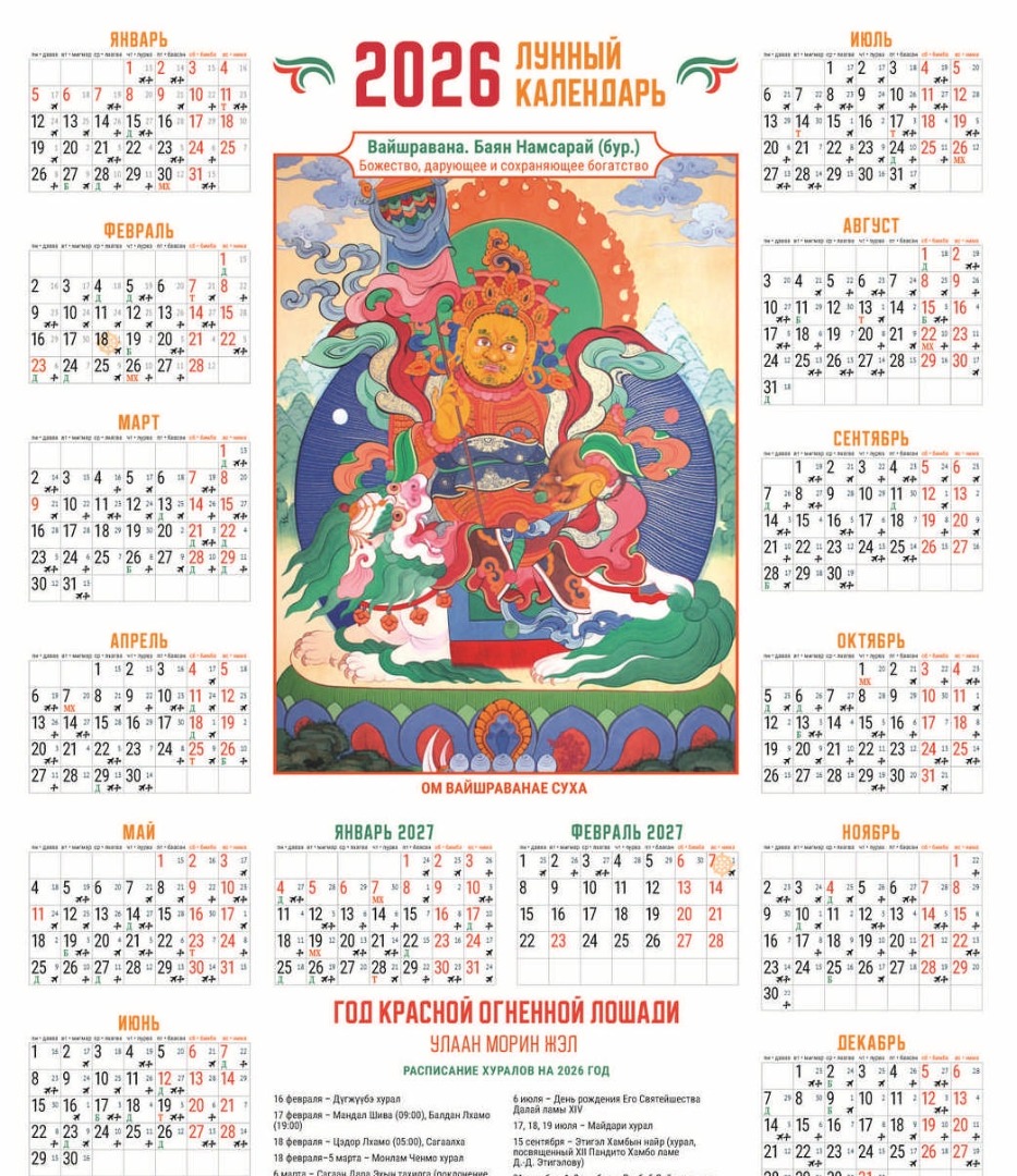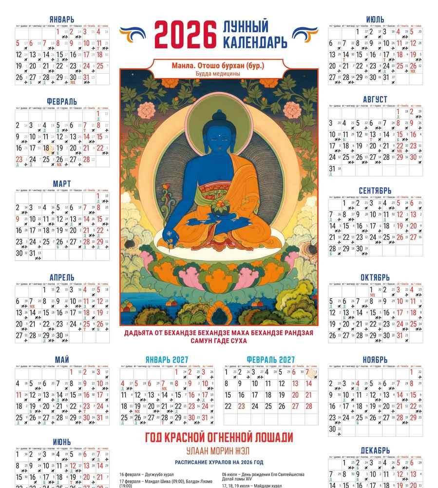 В наших календарях также найдете подробное расписание основных буддийских хуралов в Бурятии в наступающем 2026 году.